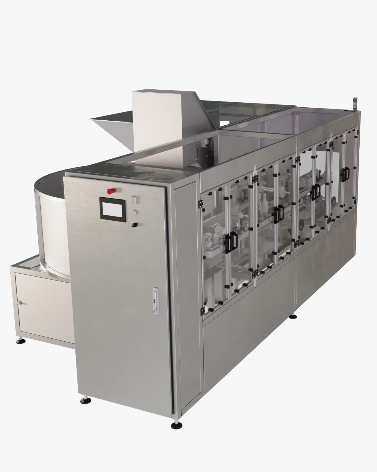 Com tecnologia de ponta, o sistema identifica e direciona automaticamente os frascos por meio de sensores inteligentes e componentes eletrônicos de alta performance. Ele é compatível com diferentes tamanhos, formatos e materiais de frascos, podendo ser integrado a linhas novas ou já existentes.